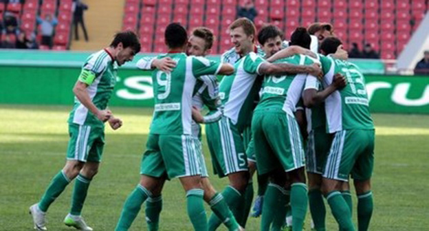 Игроки команды "Терек". Фото http://fc-terek.ru/118/#_611,8085С 11 мая 2011 года домашним стадионом ФК "Терек" является стадион спорткомплекса имени Ахмата Кадырова ("Ахмат-Арена") вместимостью 30 тысяч зрителей.