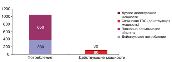 При этом новая нагрузка сооружаемых олимпийских объектов, по уточненным оценкам 2008 года, составит не 218 мегаватт, как планировалось при принятии решения о проведении Олимпиады, а 650 мегаватт.