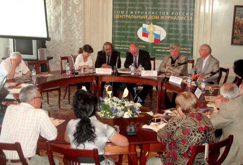 Круглый стол, на котором состоялась презентация доклада, вела секретарь Союза журналистов России Надежда Ажгихина. На мероприятие собралось порядка 30 человек, включая журналистов из регионов Северного Кавказа. Среди них был Руслан Гусаров, руководитель Северокавказского центра НТВ. Представителей прокуратуры и ФСБ на встрече не было, на что в своем выступлении обратил внимание президент Фонда защиты гласности Алексей Симонов.