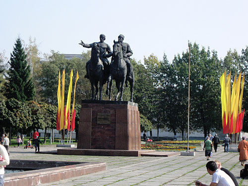 На площади 50-летия Октября состоится возложение цветов к установленному здесь в 1982 год монументу "Дружба народов" в честь 200-летия добровольного присоединения Осетии к России. Традиционно День республики открывается на этой площади.