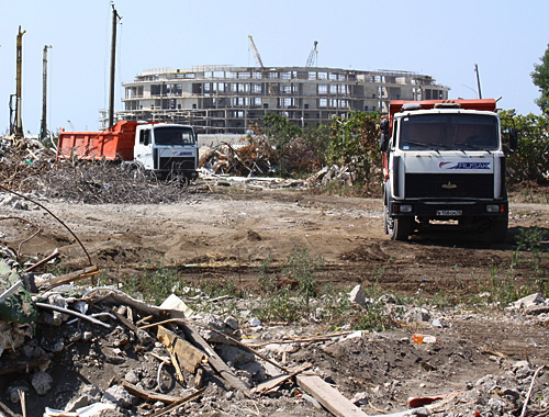 В Имеретинской низменности в Сочи на месте предстоящего строительства стадиона, на котором пройдет открытие Олимпиады в Сочи в 2014 году, в настоящее время продолжается снос частных домовладений.