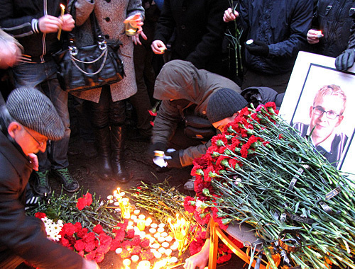 Оставшиеся молодые люди (это была меньшая часть присутствовавших) обступили портрет с горящими свечами. Разговор шел спокойно о том, "как можно было не помочь парню, который нуждался в помощи".