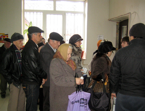 В пункте оплаты территориального участка г. Махачкалы ООО "Газпром межрегионгаз Пятигорск" на улице Абубакарова, 13 работал только один терминал, у которого постоянно образовывалась очередь. Пенсионер показывает квитанцию из терминала, на которой стерлись данные. Махачкала, 23 марта 2011 г. Фото "Кавказского узла"Один из пенсионеров обратил внимание корреспондента "Кавказского узла" на полученный из терминала чек: половина данных на этом финансовом документе были стерты. Мужчина выразил опасения, что не сможет потом доказать свои платежи.