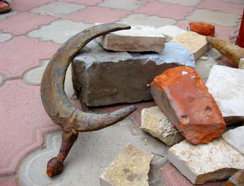 Очевидцы показали корреспонденту следы крови, битые окна павильонов рынка, измятые ставни,Очевидцы показывают сломанные погромщиками ручки ворот мечети. Астрахань, 3 августа 2011 г. Фото "Кавказского узла" сломанные ручки ворот мечети и сломанный полумесяц, который располагался над воротами. Во дворе мечети лежат груды кирпичей и камней, которыми погромщики забрасывали мечеть. Али Магомедов продемонстрировал следы побоев. Сколько человек пострадало со стороны защитников мечети, он затруднился сказать. «Мы в больницы не обращаемся, лечимся дома», - пояснил Али.