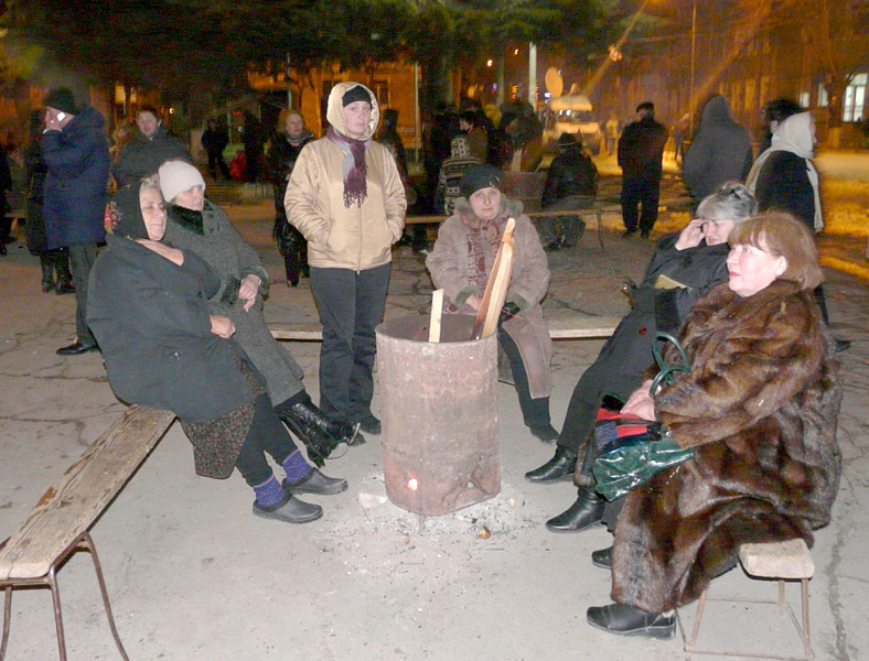 На площади продолжают гореть костры, на улице морозно - около -5-7. Многие обмотаны одеялами. Среди митингующих - представители интеллигенции, старики, дети. На Театральной площади также стоят две большие палатки.