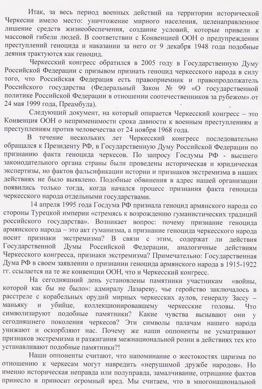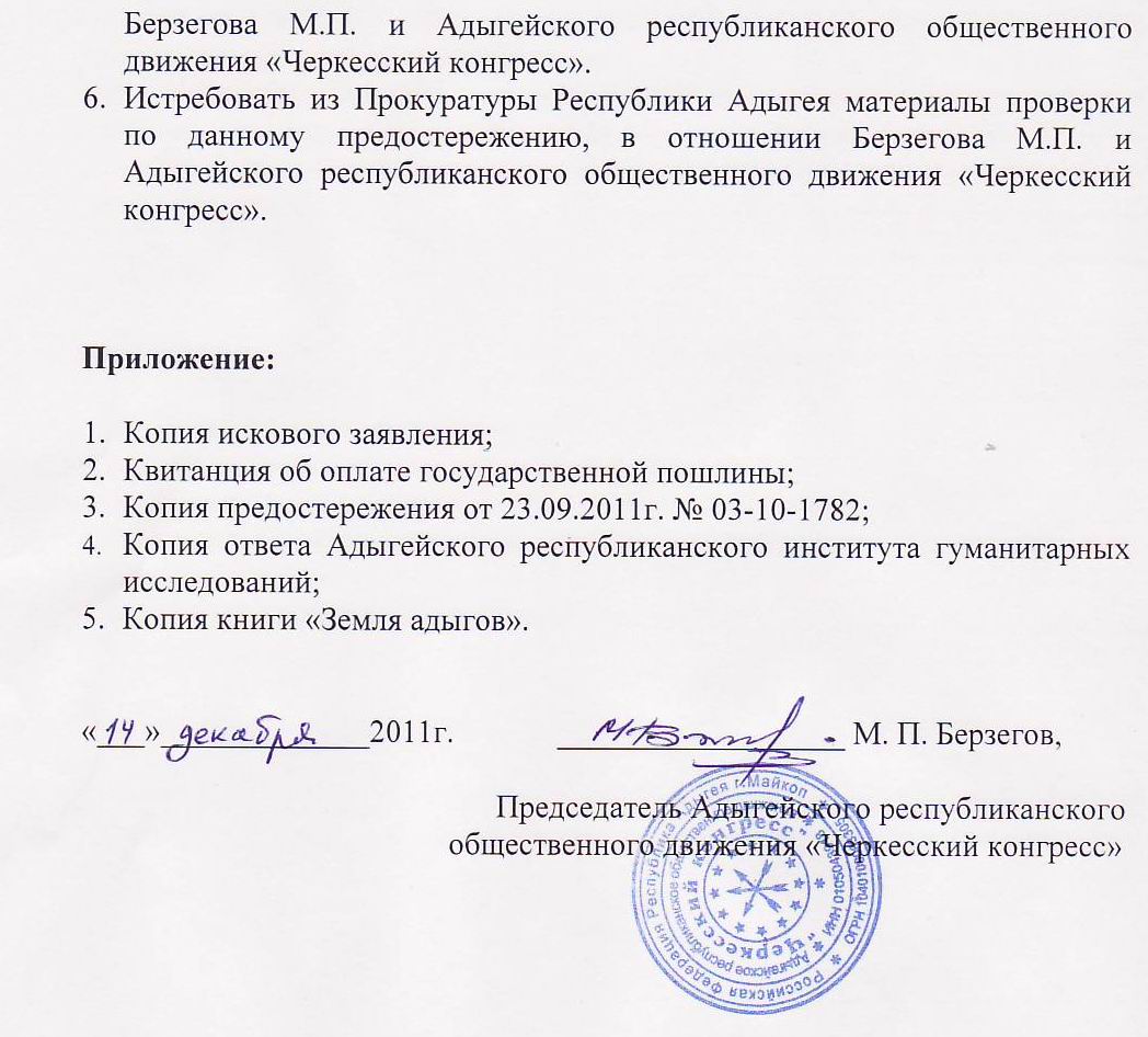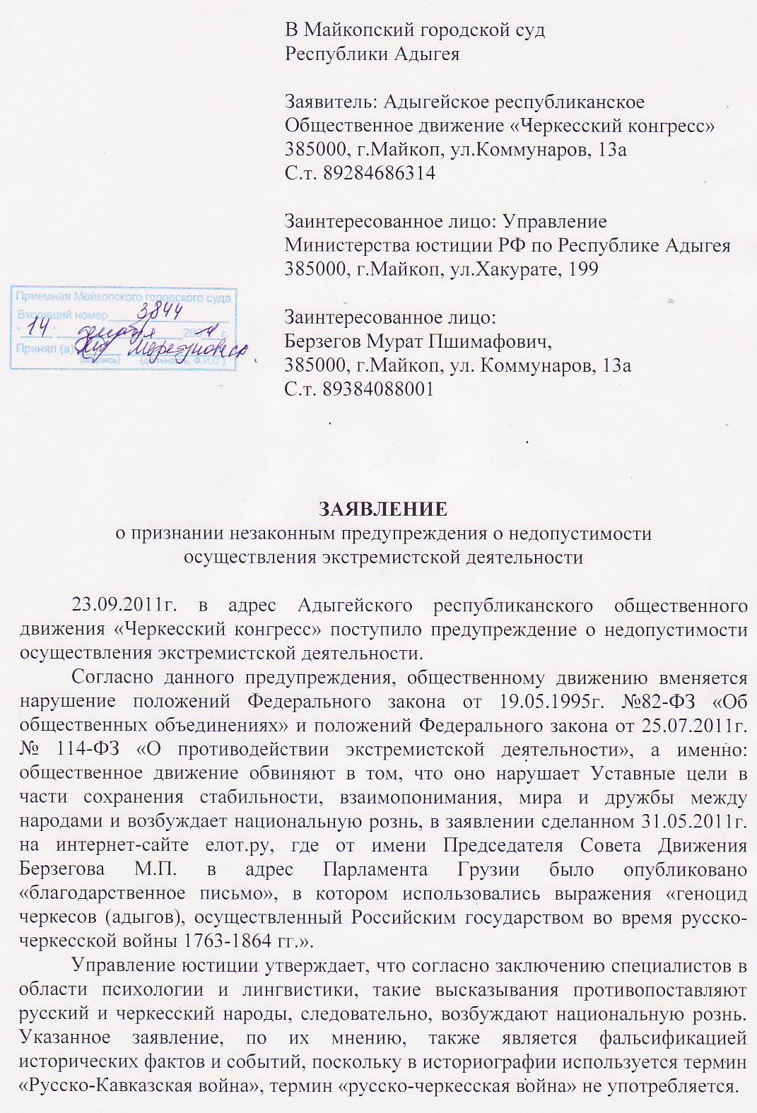 Заявление АРОД "Черкесский конгресс" в Майкопский городской суд