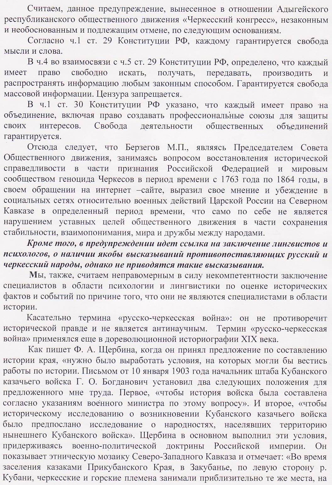 Адыгейское республиканское общественное движение (АРОД) "Черкесский конгресс" направило в Майкопский городской суд заявление о признании незаконным предупреждения о недопустимости осуществления экстремистской деятельности.