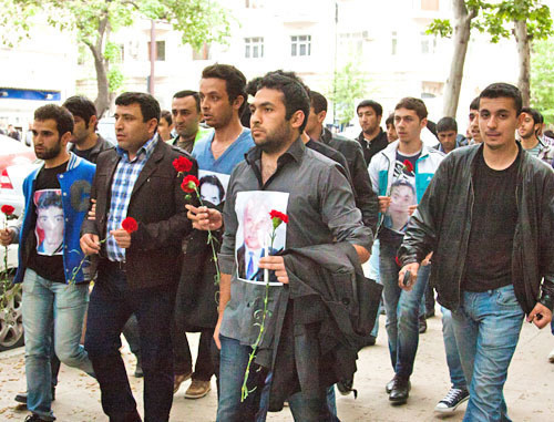 Несколько групп молодежных активистов общей численностью примерно 150 человек с разных направлений попытались сегодня совершить шествие к корпусу АГНА, где три года разыгралась кровавая драма. Однако уже с утра усиленные наряды полиции перекрыли оба подступа к зданию по улице Диляры Алиевой.