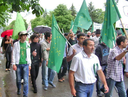 Во время движения участники шествия скандировали: "Мы - адыги" на адыгейском языке, колонну сопровождали сотрудники правоохранительных органов.