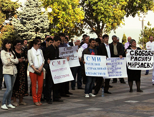Также на митинге выступила тетя Расула Мирзаева Айшат Мирзаева, которая заявила, что ее племянник из-за несчастного случая подвергся гонениям. "Год и два месяца он ждет, пока вынесут решение. Когда он выигрывал на всевозможных чемпионатах, то поднимал не флаг Дагестана, а России. Расул не хотел убивать этого парня, это был несчастный случай, но какой из этого раздули скандал (конфликт между Расулом Мирзаевым и Иваном Агафоновым произошел 13 августа 2011 года в центре Москвы у ночного клуба "Гараж". В ходе ссоры спортсмен ударил Агафонова, после чего он был доставлен в больницу, где умер 18 августа 2011 года. - Прим. "Кавказского узла")!" - возмутилась Мирзаева.