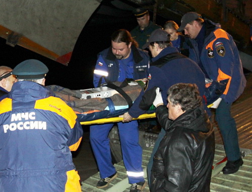 Сегодня в 03.05 самолет МЧС России Ил-76 с пострадавшим полицейским приземлился на подмосковном аэродроме "Раменское". На борту находились медицинские модули, врачи отряда "Центроспас", специалисты всероссийского центра медицинских катастроф "Защита" и психолог центра экстренной психологической помощи, говорится в сообщении на сайте МЧС РФ.