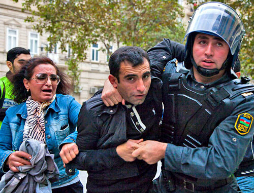 Однако сотрудники полиции и лица в штатском сразу стали задерживать протестующих. При этом пострадал и журналист оппозиционной газеты "Ени Мусават" Фараим Ильгароглу, несмотря на то, что он был в опознавательном жилете с надписью  "Пресса", сообщает корреспондент "Кавказского узла".