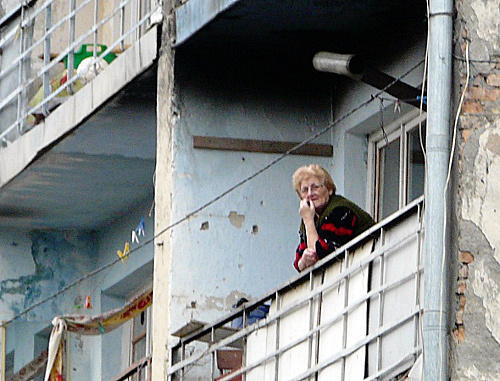 Тем не менее она рассказала о накопившихся проблемах. "Сами видите, в каких условиях мы живем. Ни окон, ни дверей, серость и обшарпанность, везде грязь и нищета. Такова постоянная картина жизни за последние 20 лет", - сказала женщина.