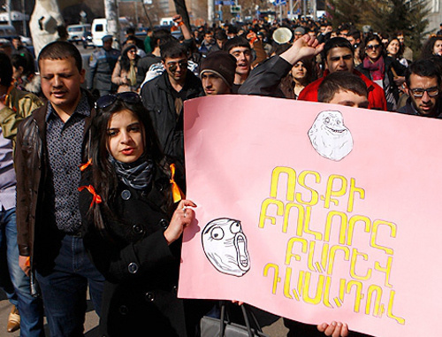 Студенческая акция протеста началась сегодня перед главным корпусом Ереванского государственного университета, после чего участники акции начали совершать обход ереванских вузов. активисты координировали свои действия через социальную сеть Facebook, сообщает корреспондент "Кавказского узла".