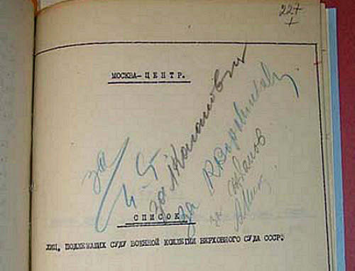 Представители СМИ получили диски и копии некоторых страниц расстрельных списков с автографами Сталина, Молотова, Ворошилова, Кагановича, Жданова и Микояна.