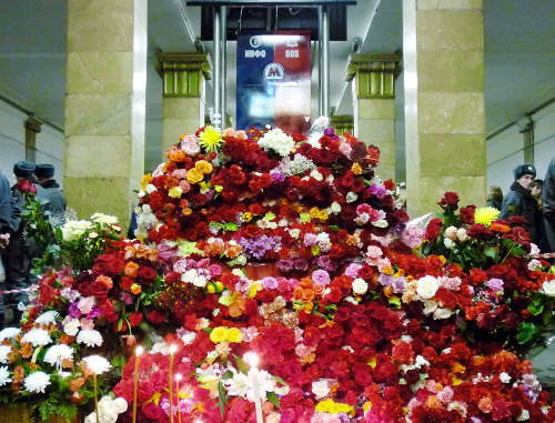 Ежегодно 29 марта москвичи и гости столицы приносят корзины цветов с траурными лентами и свечи к местам взрывов, чтобы почтить память погибших, передает РИА "Новости".