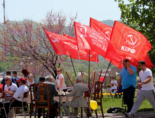 В этом году коммунисты республики отошли от традиционных митингов, шествий и демонстраций и устроили "маевку". Около памятника генералу Иссе Плиеву во Владикавказе, по оценкам МВД, собрались более 350 человек.