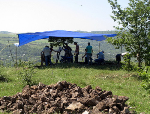 В ходе раскопок старинного города-крепости Каркар были выявлены строения с циклопической кладкой, эпохи "позднего железа" - VII-VI века до нашей эры.  Нагорный Карабах, 15 июня 2013 г. Фото Алвард Григорян для "Кавказского узла""Согласно письменным источникам, город Каркар представляется как город-крепость времен персидского царя Хосрова Ануширвана, который жил в 531-578 годы нашей эры и который завоевал эту страну. Но в ходе раскопок были выявлены стены, указывающие на урартский период, что свидетельствует о том, что Каркар намного древнее времен персидского царя Ануширвана, который, оказывается, не построил этот город, а перестроил", - рассказал корреспонденту "Кавказского узла" руководитель экспедиционной группы, археолог Гагик Саркисян.