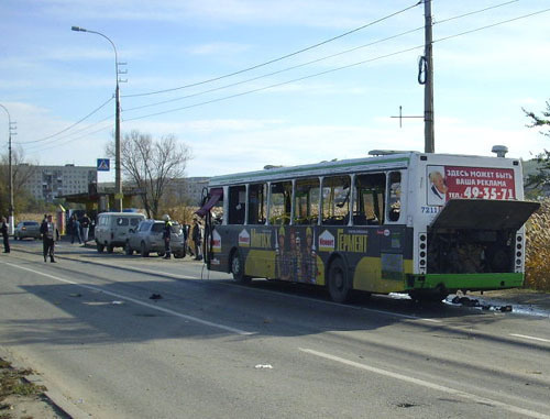 Как информировал "Кавказский узел", взрыв в автобусе марки "ЛиАЗ" произошел сегодня днем. Изначально озвучивалась информация, согласно которой, при взрыве погибли четыре человека, еще семеро были ранены. Позднее сообщалось, по разным данным, о 17-18 раненых и от пяти до шести погибших.