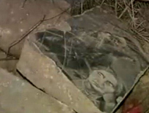 На отдельных кадрах, снятых в темноте, видны разбросанные плиты с фрагментами фотографий человеческих лиц, а журналист на азербайджанском языке рассказывает, что местные жители после небольшого дождя увидели эпитафии на армянском и русском языках, а также выгравированные портреты усопших людей и кресты на камнях, используемых в качестве материала для строительства дороги.