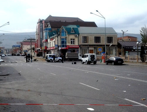 О взрыве через смс-сервис написал читатель "Кавказского узла", он проинформировал об одном погибшем. Бомба в магазине "24 часа", расположенном на углу улиц Котрова и Ярагского, сработала около 11.30 мск.