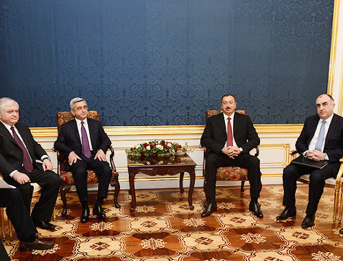 Первая за два года встреча двух президентов прошла в закрытом для журналистов режиме. Переговоры Ильхама Алиева и Сержа Саргсяна продлились около двух часов, затем к ним присоединились сопредседатели Минской группы ОБСЕ от России, Франции и США, сообщают "Новости-Азербайджан".