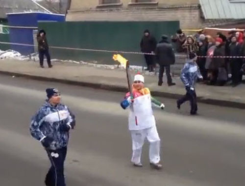 В Брянске во время эстафеты олимпийского огня, которая прошла 15 января, один из участников, житель Махачкалы Магомед Батыров станцевал лезгинку. Для этого ему пришлось отдать факел одному из охранников, которые бежали вместе с ним, сообщило 17 января издание "Брянск сегодня".