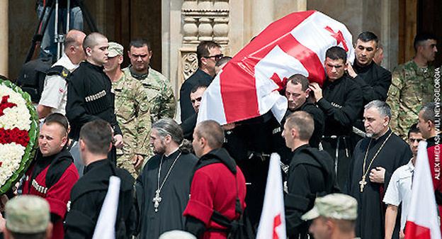 Траурная церемония прощания проходила с воинскими почестями. Вдоль лестницы во дворе Самеба, по которой спускали гроб с телом бывшего президента Грузии, по обе стороны был выстроен военный караул.