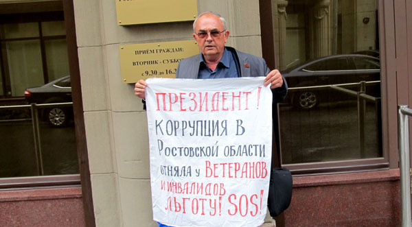 Как рассказал корреспонденту "Кавказского узла" представитель инициативной группы жителей города Зверево, депутат городской Зверевской думы Ростовской области Валерий Дьяконов, сегодня в 13.00 мск он провел одиночный пикет у приемной президента в Москве.