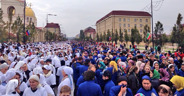 В день рождения президента России Владимира Путина, 7 октября, в Грозном прошло массовое шествие, в котором, по данным властей, приняло участие порядка ста тысяч человек. Госслужащие, учителя и учащиеся образовательных учреждений говорят о принудительном участии в этом мероприятии. Организаторы шествия доставили неудобства жителям столицы республики, жалуются местные жители.