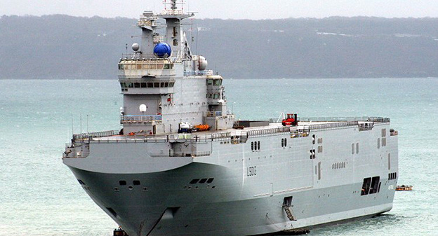 Соглашение о строительстве двух вертолётоносцев "Мистраль" на сумму в 1 миллиард 120 миллионов евро было подписано между Россией и Францией в июне 2011 года. Комментируя сложившуюся в последнее время ситуацию, Владимир Путин 16 апреля выразил надежду на цивилизованное разрешение ситуации, заявив, что неустойку за отказ от поставки кораблей российская сторона требовать не будет.