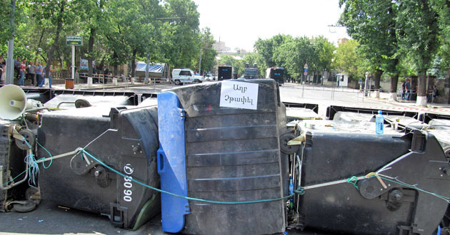 Между тем представитель фирмы, которая осуществляет вывоз мусора из центра города, потребовал вернуть контейнеры, из которых манифестанты соорудили импровизированные баррикады. "В малом центре Еревана для баррикад захвачено 52 бака, эти кварталы завалены мусором", - сказал представитель фирмы.