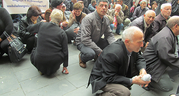 В свою очередь экс-сотрудники завода "Наирит" приостановили акции протеста до конца июля, заявила Ануш Арутюнян. Сидячую забастовку у здания правительства, с ее слов, прекратили также двое активистов.