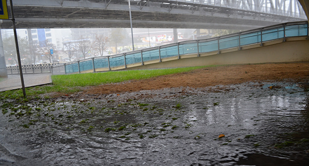 Как писал "Кавказский узел", сильные ливни, обрушившиеся на Сочи ночью 11 ноября, привели к подтоплениям. Были затоплены улицы поселка Дагомыс, в центре Сочи было нарушено движение транспорта. Селевой поток перекрыл один из двух железнодорожных путей на участке Дагомыс - Сочи.