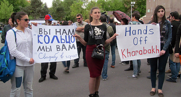 Как сообщал "Кавказский узел", в Ереване сегодня проходит акция "Руки прочь от Арцаха!". Участники акции планируют пройти шествием от площади Свободы к посольству России.