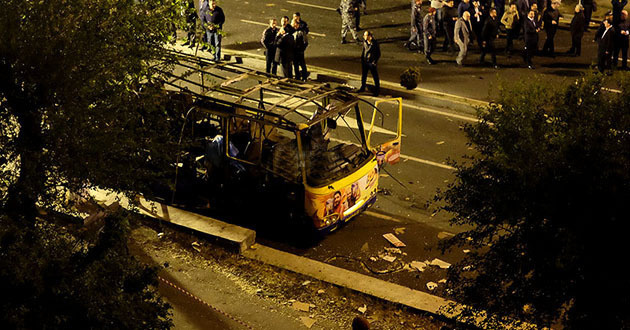 Как писал "Кавказский узел", взрыв в автобусе на улице Алабяна произошел 25 апреля в 21:51 по ереванскому времени (20:51 мск). По данным полиции, в автобусе сработало взрывное устройство, а сам момент взрыва зафиксировали камеры видеонаблюдения.