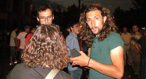 Манифестанты расположились на газоне, прилегающем к улице Хоренаци. Некоторые из активистов легли спать на асфальте, расстелив заранее принесенные пледы или картонные коробки, передает корреспондент "Кавказского узла".