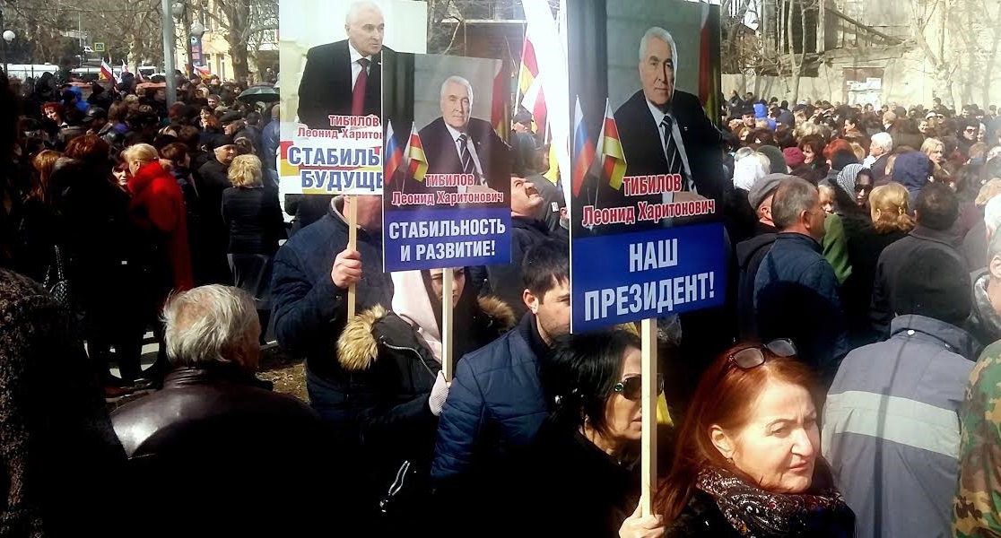 На митинге лидеры партий, преподаватели школ и университета призывали собравшихся поддержать кандидатуру Тибилова на предстоящих президентских выборах и способствовать сохранению спокойствия.