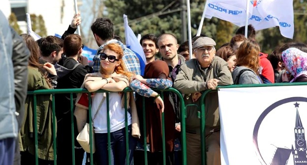 Опрошенные "Кавказским узлом" участники митинга заявили, что их присутствие на акции было обеспечено "строгим приказом начальства".