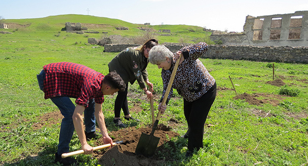 Посадка деревьев в поселке Мехакаван на юге Гадрутского района, в память о погибших в апрельской войне 2016 года. Нагорный Карабах. 8 апреля 2017 годФото Алвард григорян для "Кавказского узла""Важно то, что сегодня здесь собрались сотни молодых людей. Каждый армянин, особенно живущий в Арцахе (Нагорный Карабах), обязан посадить дерево, которое является символом создания новой жизни", - сказал спикер парламента Нагорного Карабаха Ашот Гулян.