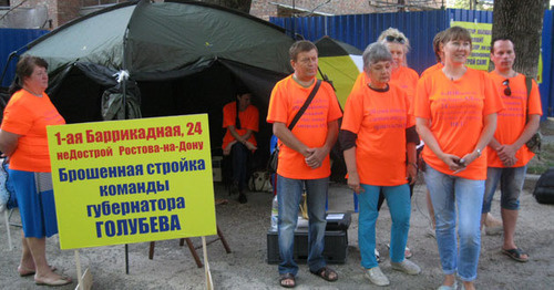 Как информировал "Кавказский узел", 10 июля дольщики ЖК "Баррикадная" собрались у недостроенного дома на 1-й Баррикадной улице и заявили о начале голодовки, требуя, чтобы ресурсы на строительство дома были изысканы в резервном фонде области. 16 июля участники митинга обманутых дольщиков в Ростове-на-Дону потребовали отставки главы региона.