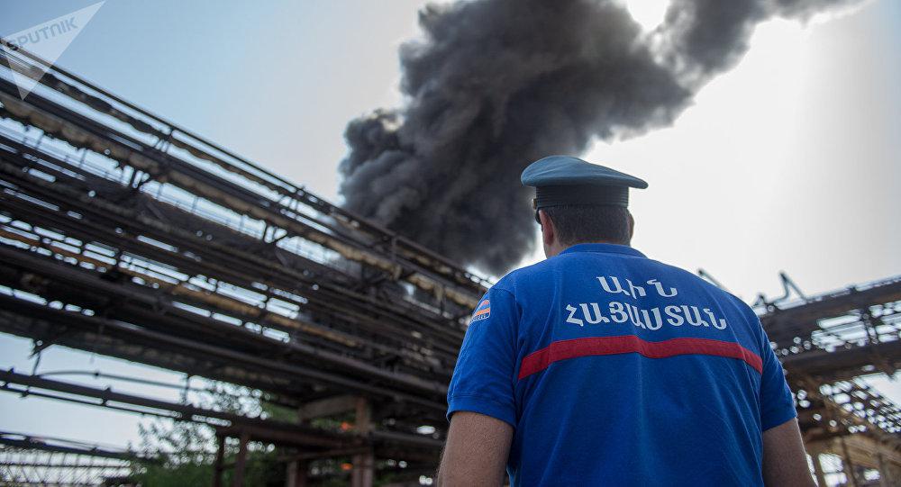 На территории завода дежурят два расчета спасателей, сообщает со ссылкой на МЧС "Sputnik-Армения".