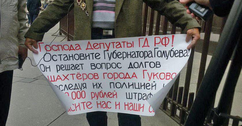 Как сообщал "Кавказский узел", шахтеры из города Гуково, работавшие на шахтах компании "Кингкоул", требуют погашения долгов по зарплате на акциях протеста, которые проводят в виде митингов, пикетов и шествий. По подсчетам инициативной группы, шахтерам должны 374 миллиона рублей. Однако региональные власти заявили, что требуемые протестующими компенсации будут выплачены только после реализации имущества компании.