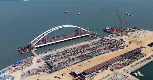 Автодорожная арка весит пять тысяч тонн. Обе арки, и железнодорожная, и автодорожная, обеспечат пропуск судов через свободное пространство шириной 185 метров и высотой 35 метров от уровня воды, сообщает "Интерфакс".