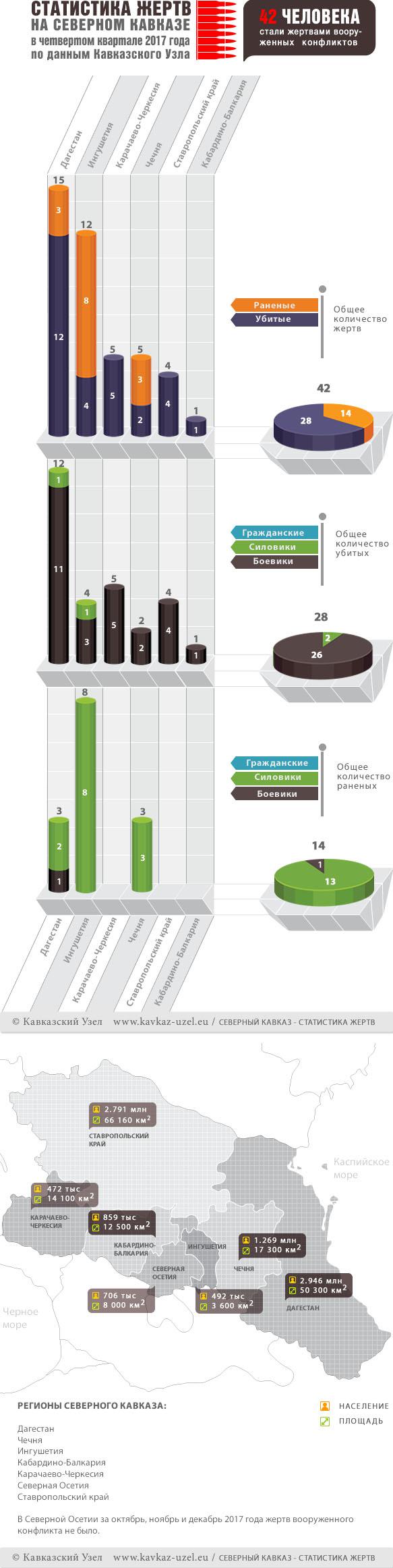 Инфографика. Статистика жертв на Северном Кавказе в четвертом квартале 2017 года по данным Кавказского Узла