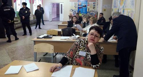 Наблюдатели пожаловались, что из-за большого скопления людей на участке им плохо видна урна. Некоторым пришлось вставать, чтобы вести подсчет избирателей.