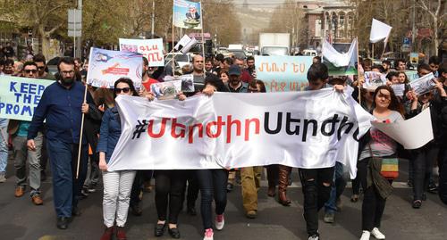 Как писал "Кавказский узел", более 50 человек вышли сегодня на шествие в Ереване