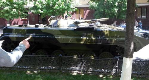 Сегодня все кварталы, прилегающие к центральным улицам, были блокированы силовиками. Пройти на проспекты Путина и Кадырова зрители, а также участники акции "Бессмертный полк" могли только через рамки металлодетектора и после личного досмотра. Перед мечетью "Сердце Чечни" была организована выставка тяжелой бронетехники – там установили танк Т-72, САУ, БМП, бронетранспортер и гусеничный тягач МТЛБ.