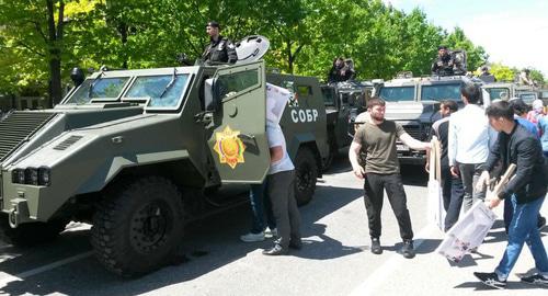 "Мы здесь уже где-то с полдесятого утра. Нам раздали плакаты с фотографиями участников Великой Отечественной, мы прождали несколько часов, пока начнется шествие «Бессмертный полк»", - рассказала "Кавказскому узлу" одна из участниц мероприятия, назвавшаяся Тамарой.