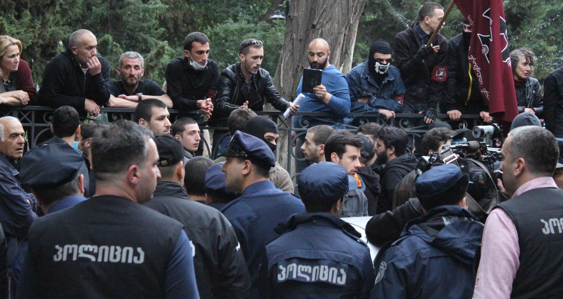 Как сообщал "Кавказский узел", сегодня протестующие начали новую акцию "За наши права", на фоне которой проходит контракция неонационалистической организации "Национальное единство Грузии". Участники контракции пытаются прорвать полицейское оцепление, чтобы пройти к протестующим возле парламента Грузии. Полиция стоит в несколько рядов живой цепью, чтобы не допустить столкновений.